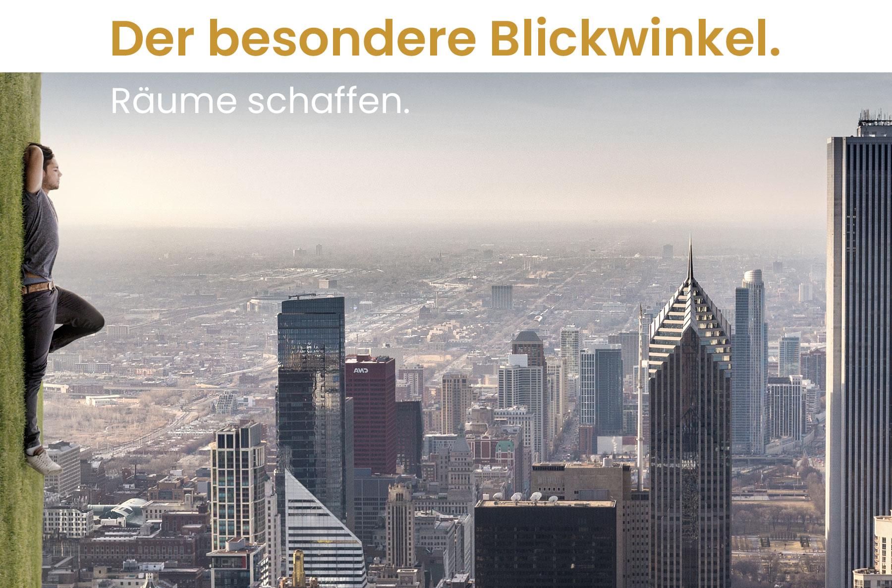 Das Bild- und Headlinekonzept spielt mit ungewöhnlichen Perspektiven und