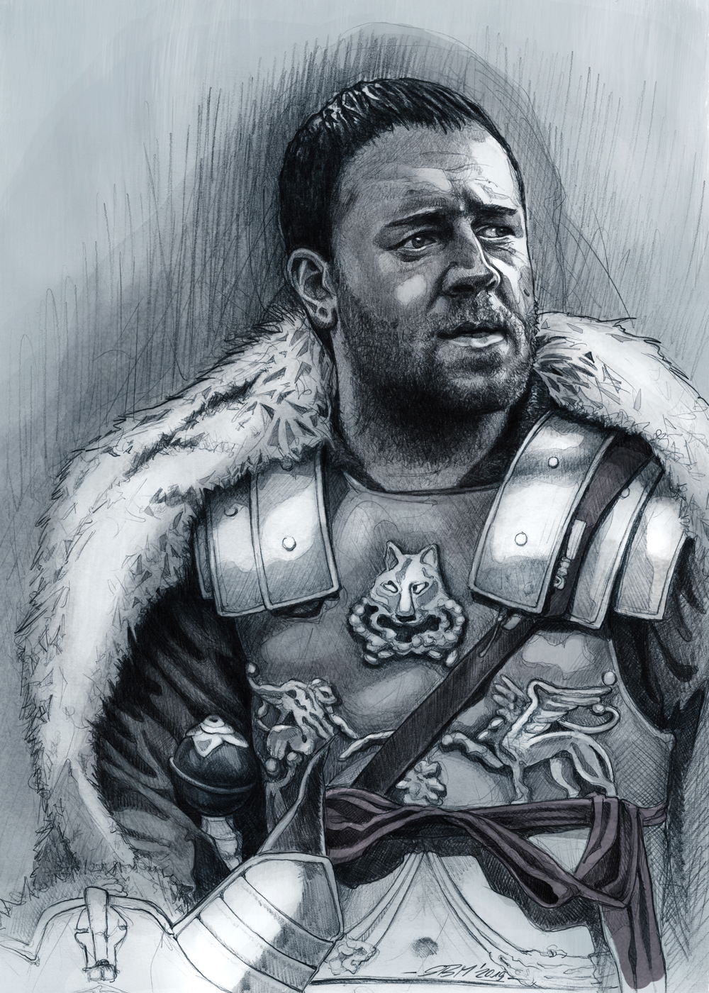 Russel Crowe - 2019, pencil, acrylic, digital