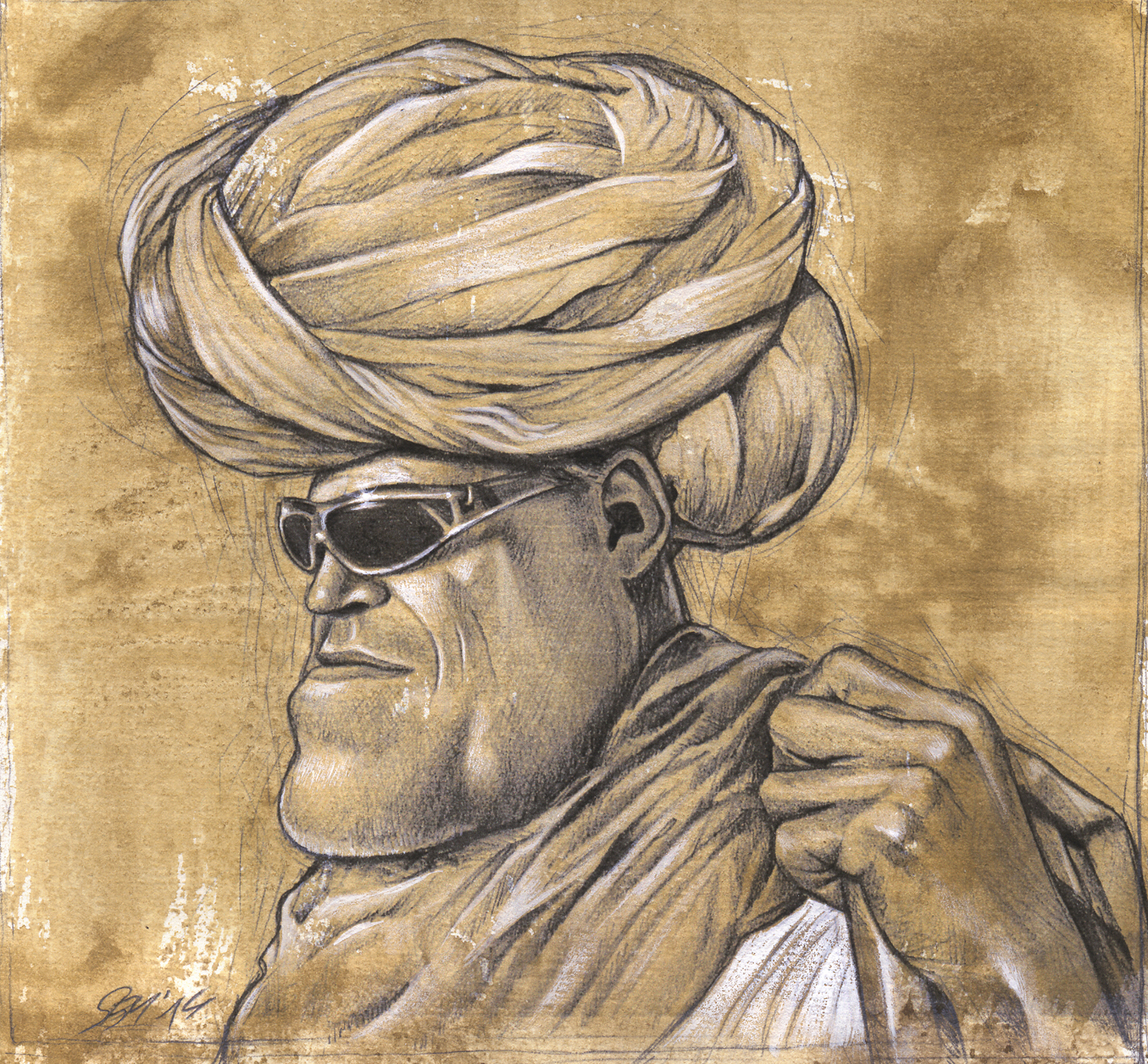 Mann mit Turban - 2014, pencil, acrylic, digital