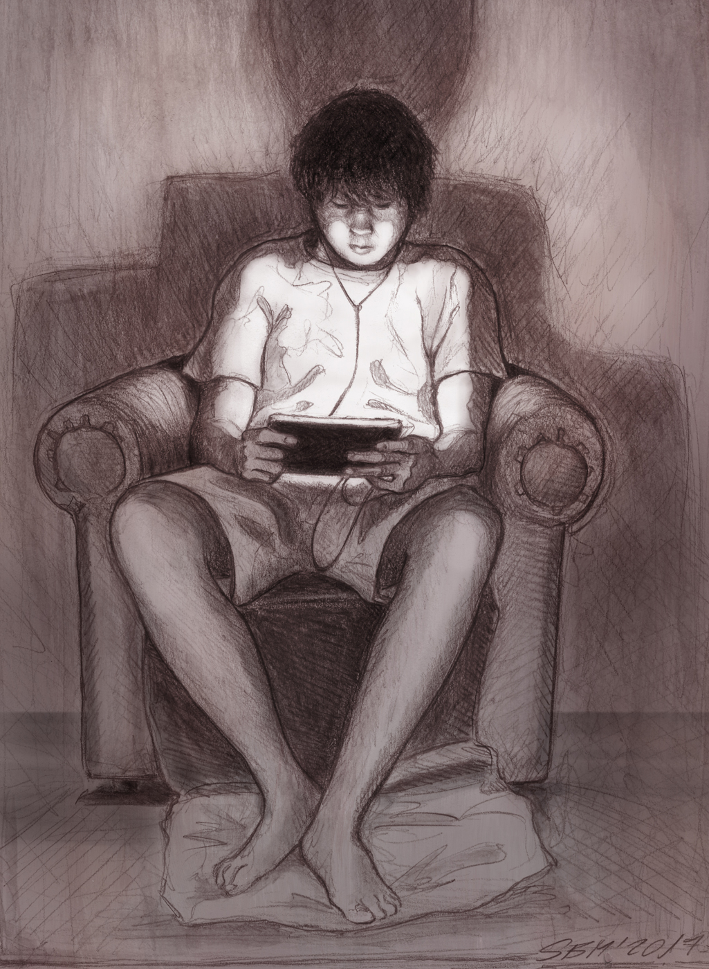 Junge mit i-Pad - 2017, Pencil, digital