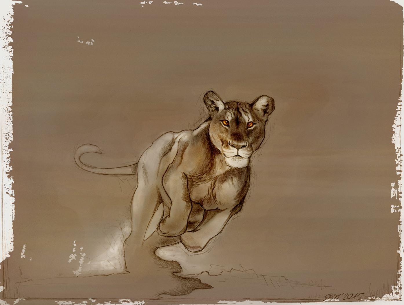 Löwin - 2021, pencil, acrylic, digital